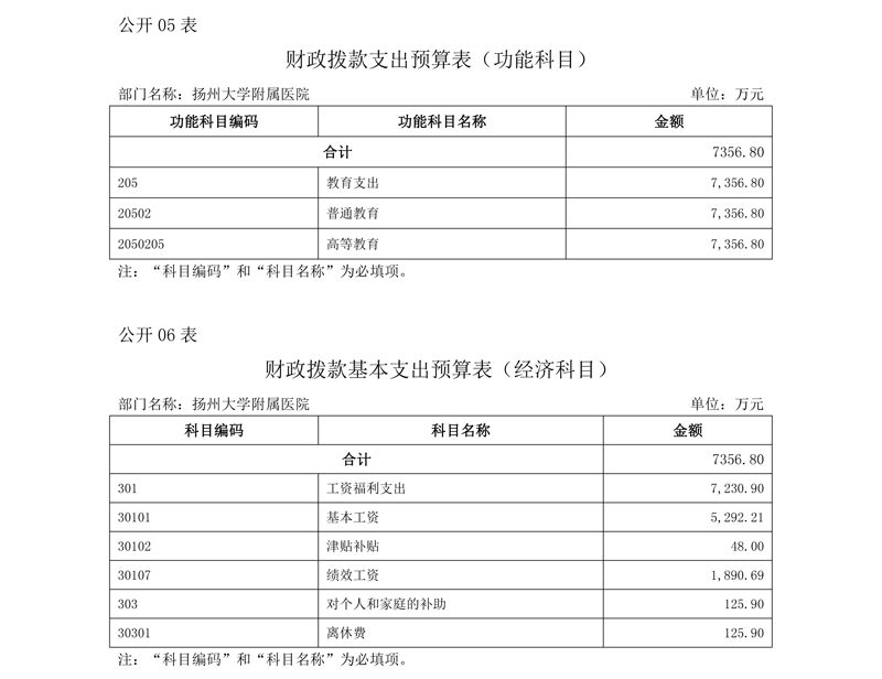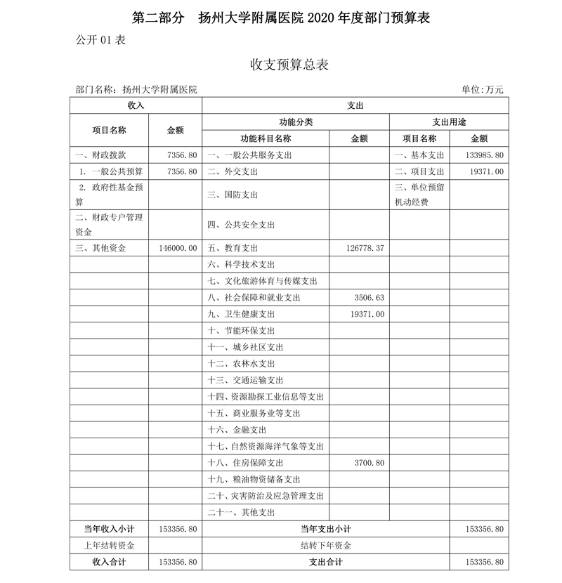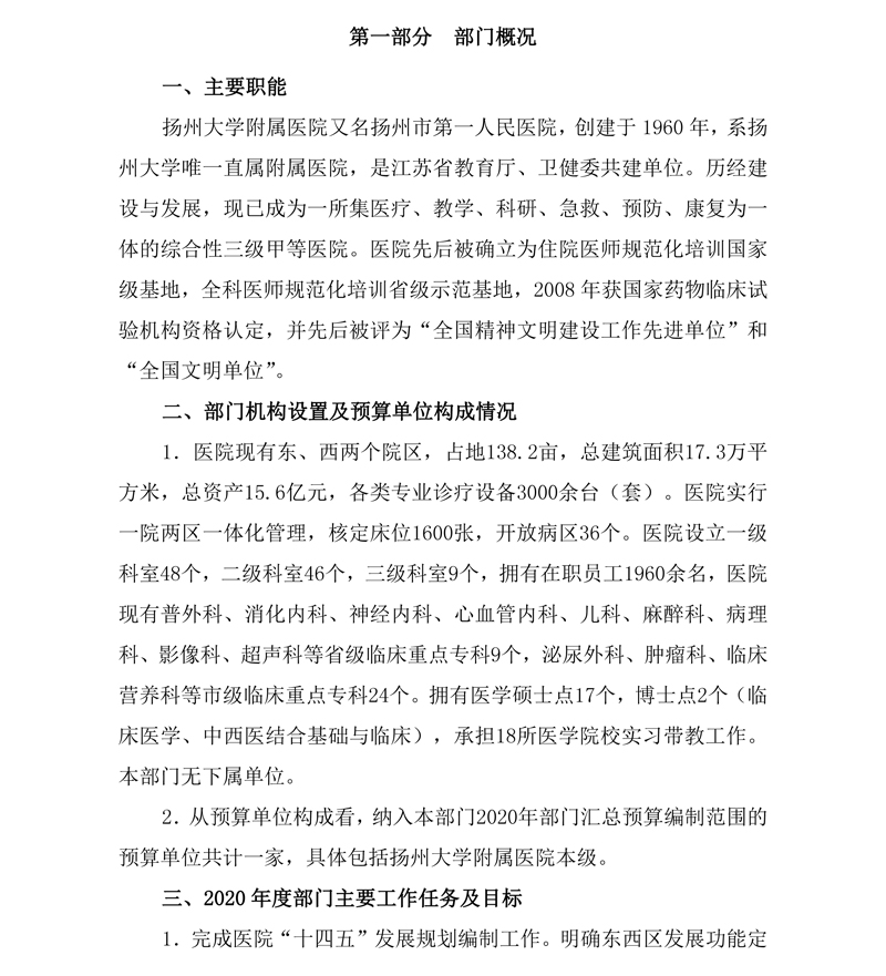 扬州大学附属医院2020预算公开