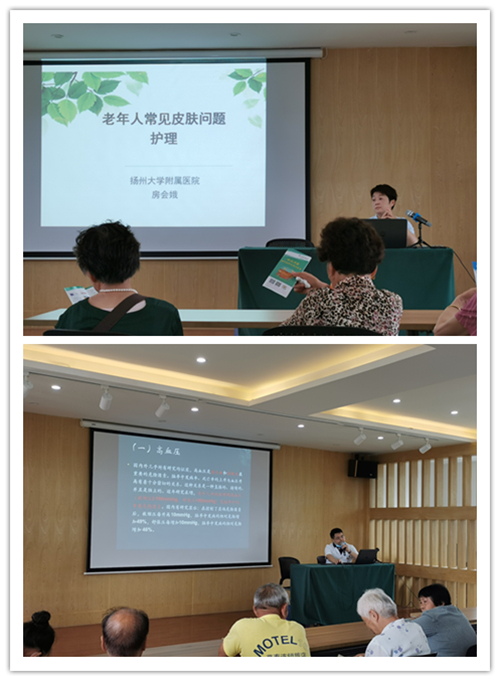 科普知识宣讲组由神经外科护士长房会娥、副主任医师王鸿生组成,他们分别作“老年人常见皮肤问题护理”“老年人脑血管疾病的预防及急救”科普知识讲座。针对老年人常见健康问题,他们利用通俗易懂的语言,进行专业、全面的讲解,进一步提高了老年居民的防病治病意识。
