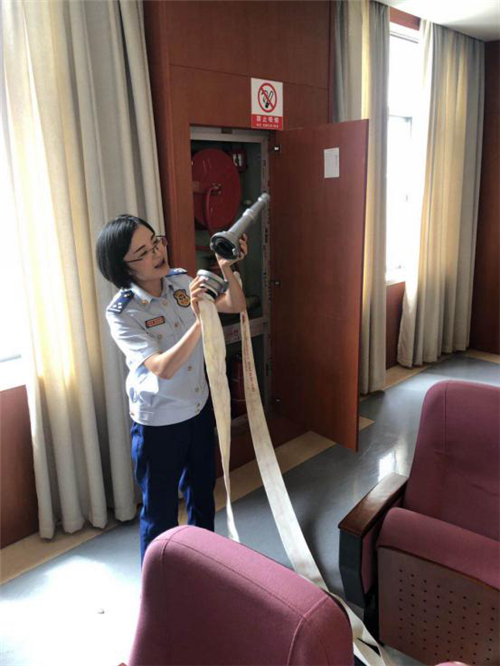 吴菲菲从医院的实际情况出发,通过事故分析、案例讲解,声情并茂地科普消防安全知识,着重向新员工们强调了消防安全的“四个能力”,并亲自示范了消火栓及灭火器的使用方法。