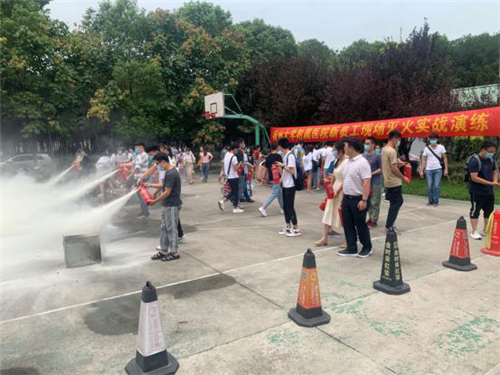 随后,新员工们来到篮球场进行灭火器灭火实战演练,我院消防科副科长王磊讲解灭火演练流程后,新员工们每2人一组进行灭火演练,大家亲身体验了灭火流程。