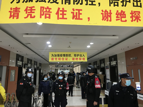 近日,多部门多次研究规范陪护措施,保卫处加强了住院处入口的安保力量,致力阻挡无陪护证的陪护人员,同时引导有证陪护人员注册人脸识别系统,通过红外测温人脸识别闸机系统进入住院区域。