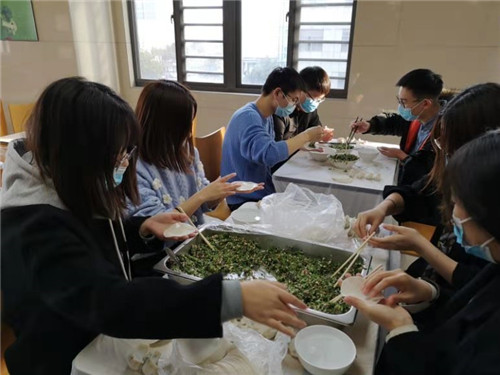 活动一直持续到晚上8点。大家兴高采烈,纷纷表示收获满满。据了解,此次迎新春活动从策划、实施,学生全程参与,特别是包饺子环节,从选材、摘菜、和馅、包饺子、煮饺子,大家各有分工,充分体会了新春佳节将至的喜悦、温馨氛围,也感受到了“盘中餐”的来之不易。活动中,同学间增进了互相的了解和友谊,更感受到医院对同学们工作生活的关心。