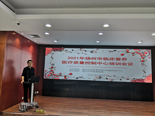 5月9日,扬州市临床营养医疗质量控制中心召开2021年第一次主题为孕产期代谢综合征的质控培训会议。市卫健委医政处处长缪彦、我院副院长刘艳秋出席会议。江苏省临床营养医疗质量控制中心主任马向华受邀参加会议,并作肥胖病的专题讲座;校食品与卫生专业彭景教授、我院产科副主任、主任医师杨霞、市妇幼保健院副主任医师张翠军、苏北医院临床营养科主任医师赵绮华等作孕产期代谢综合征专题讲座;我院临床营养科营养医师周雅、柳沁元、邹蓓蓓、徐传翀等作人体成分分析仪实践培训。