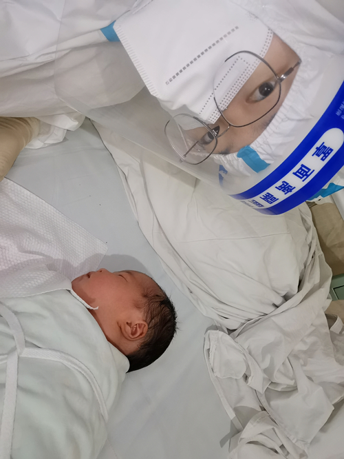 “记得当时崔女士分娩后,护士长第一时间通知我负责后半夜专门陪护她,第一次穿防护服6个多小时,我又闷又渴,稍微一动就开始呼吸急促、浑身冒汗,但为了产妇和新生儿,我动作比平时更小心翼翼。浑身软绵绵的宝宝趴在我肩膀上睡着的时候,虽然隔着防护服,但我感受到了他无比温暖的心跳,那一刻,所有的不适都烟消云散了!”产科护师金璐说。
