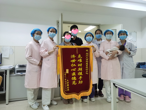 9月28日,是产妇崔女士产后42天体检的日子,也是她迫不及待来看望产科医务人员的日子。一早,崔女士的先生一手抱着孩子,一手提着锦旗,别提多高兴。一来到科室,夫妇俩就向医生护士们连声道谢,感谢一个多月前,产科所有医护对崔女士和宝宝的“特殊”照顾。