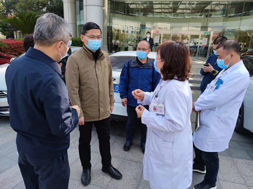 刘校长实地走访了西区医院入口流调、预检分诊、门急诊、核酸采样和发热门诊等疫情防控重点部位,详细了解医院疫情防控工作机制和重点举措,对我院疫情防控工作给予充分肯定。他强调,当前疫情防控形势依然复杂严峻,医院要始终把疫情防控作为当前头等大事、重中之重,坚持内外同防、医患同防、人物同防,落细落实各项常态化疫情防控措施,确保疫情防控各项要求到底到边;同时也要坚持两手抓,统筹好疫情防控工作和医院事业发展,统筹好医务人员调配和关心关爱员工;要坚定“坚持就是胜利、坚持才能胜利”信念,坚决保障人民群众生命安全和身体健康。