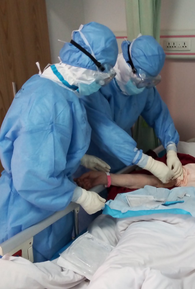 15:00,医生下达了医嘱,XX床老奶奶输液,我处理好医嘱后便让责任护士去执行,责任护士钱伟玲过来告诉我:“林老师,这个奶奶静脉不好,我扎不上,但她手上有一根PICC导管,但已经过期几天没换药了,因为她在家没人给她换,我不会使用也不敢使用,过期好几天没换药还能用吗?”作为省级静脉输液治疗专科护士的我,立马放下手头工作,并带上了PICC换药包,做好自身防护后,进入病房查看和评估患者PICC导管情况,见患者PICC穿刺点无红肿热痛、回血良好,于是为患者进行了PICC维护,并进行了输液。出病房后,突然觉得能在这个时候发挥静脉输液治疗专科护士的特长,为患者减轻痛苦,真的很欣慰,觉得自己真是来对了。