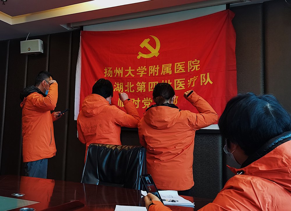 今天是周末,远在扬州的医院各级党组织书记、各位领导,都通过远程视频参加我们前方医疗队临时党支部大会。通过视频,我看到了这些久违的熟悉面孔。各位同事对我们每一句的问候都让我泪目,你们的每一句“辛苦了”,都让我们觉得这一切都不辛苦;你们的每一句“保护好自己”,都让我们时刻铭记;你们的每一句“等待你们凯旋”,都让我们如沐春风……