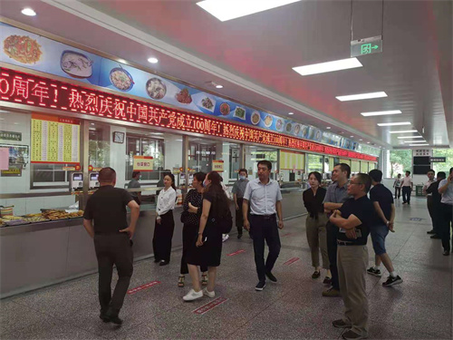 7月19日下午,我院党委副书记、副院长单清带领后勤保障处处长成琳,后勤党总支书记、后勤保障处副处长赵烨,总务科科长葛斌,质量运行与安全管理科副科长王其军,临床营养科副主任陈芳以及恒邦餐饮公司负责人等一行13人,赴学校文汇路校区参观学习餐饮保障服务。