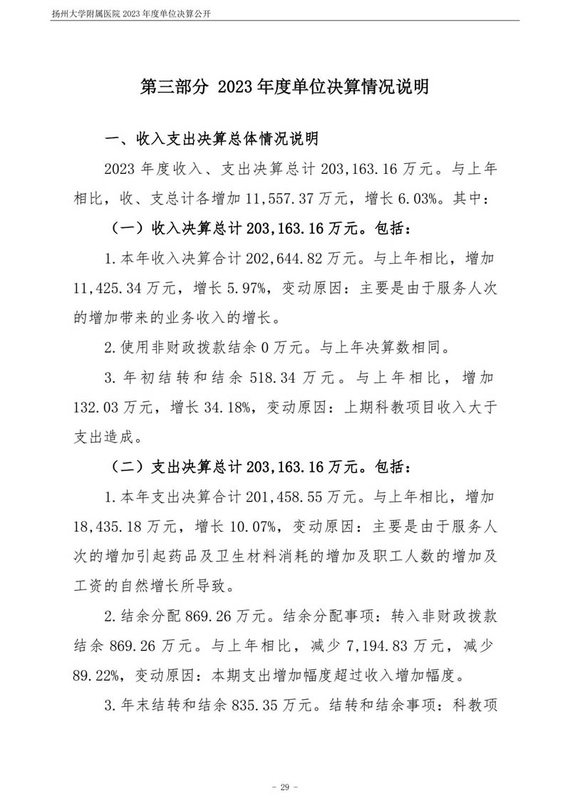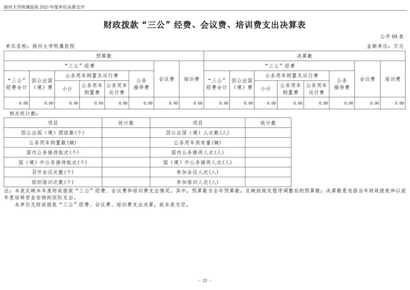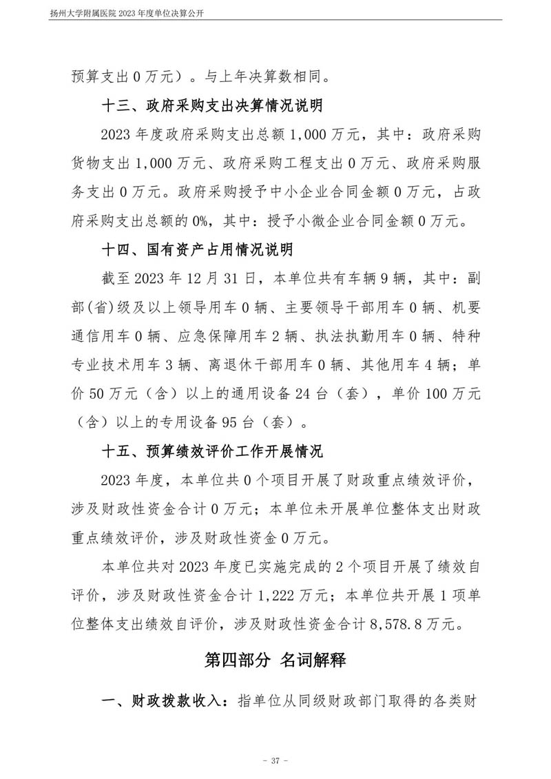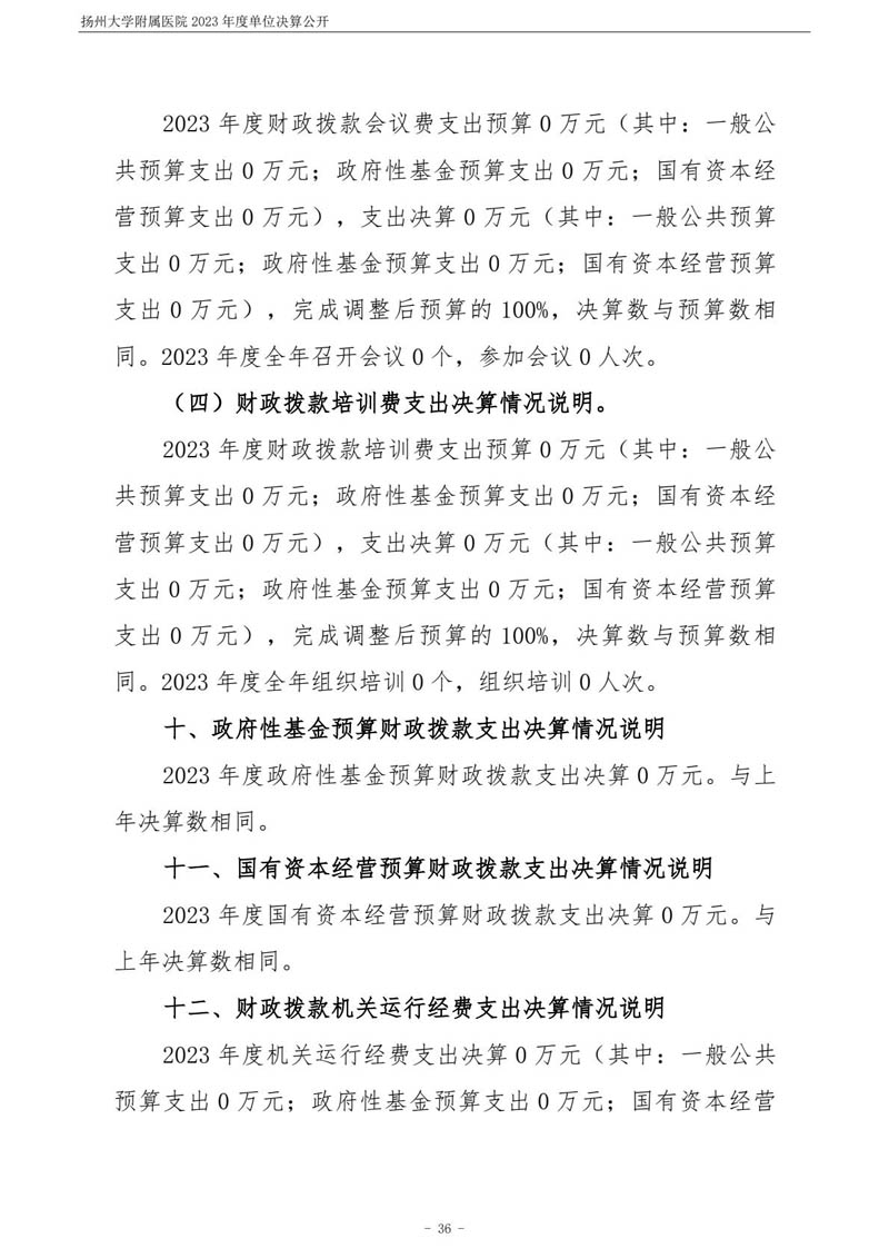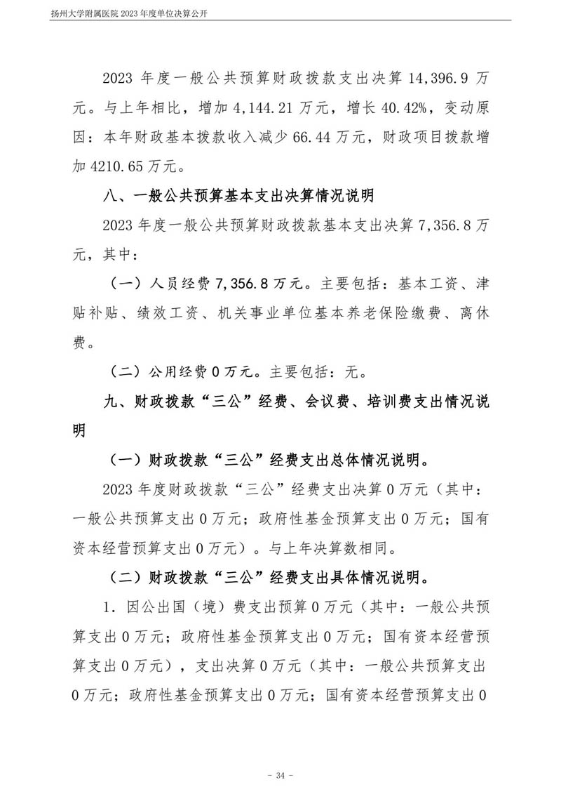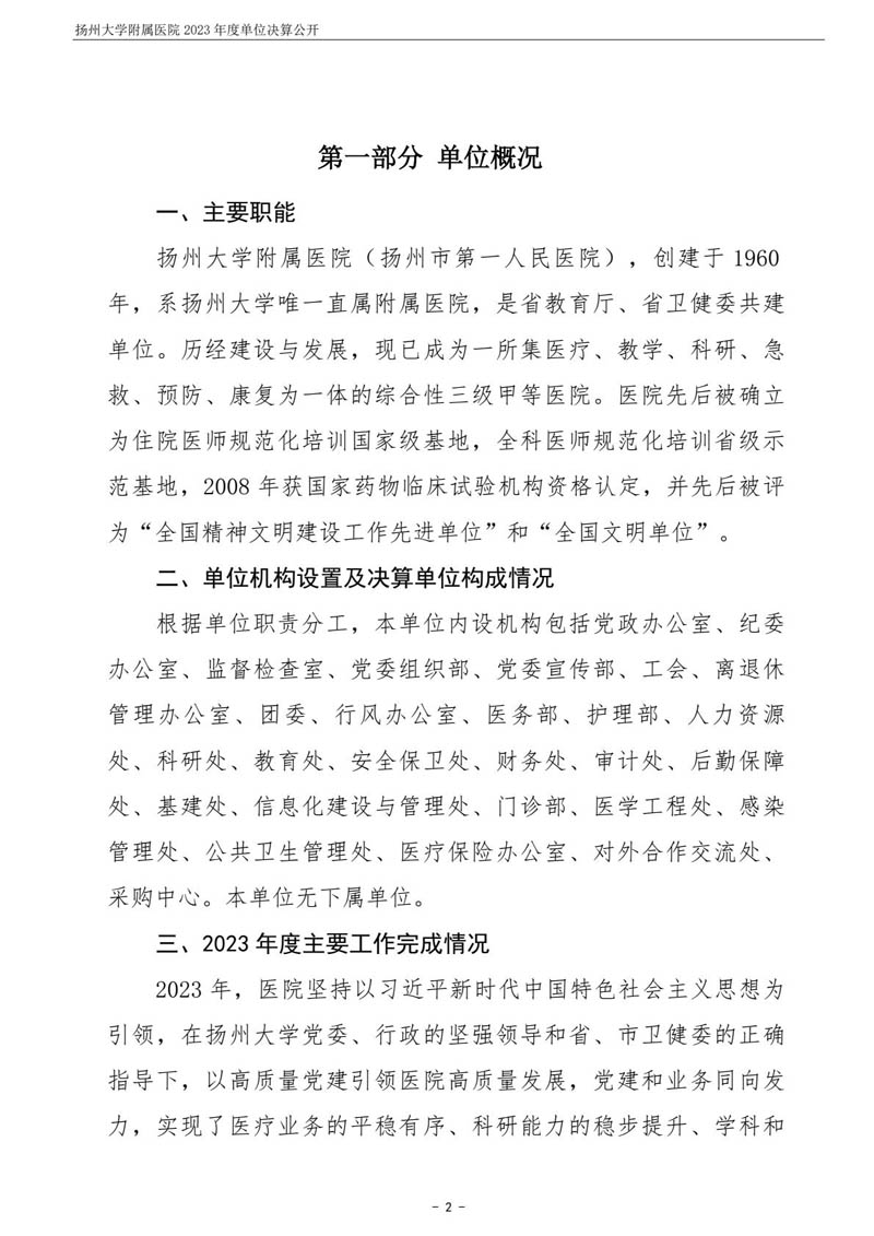 扬州大学附属医院2023年度单位决算公开