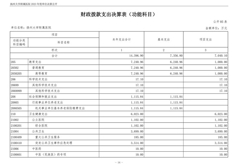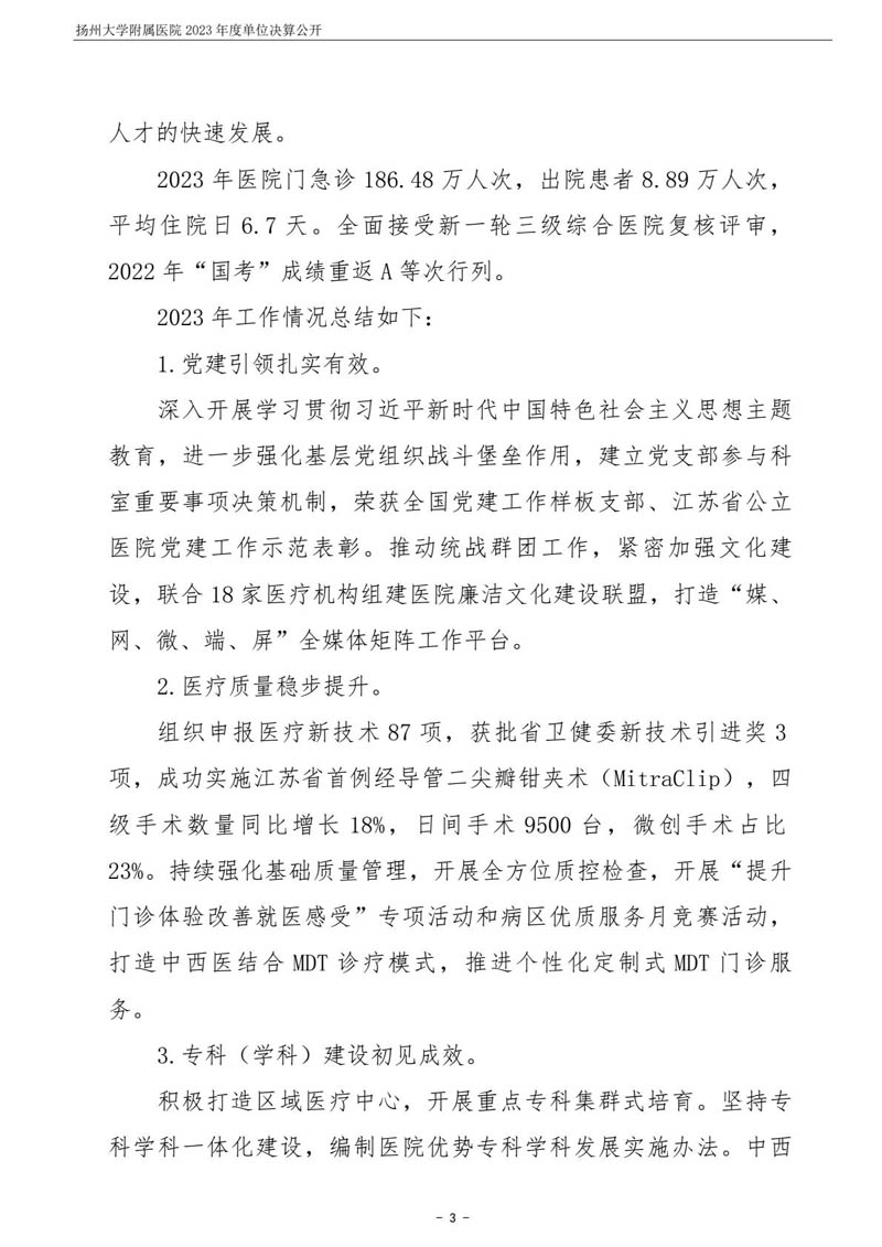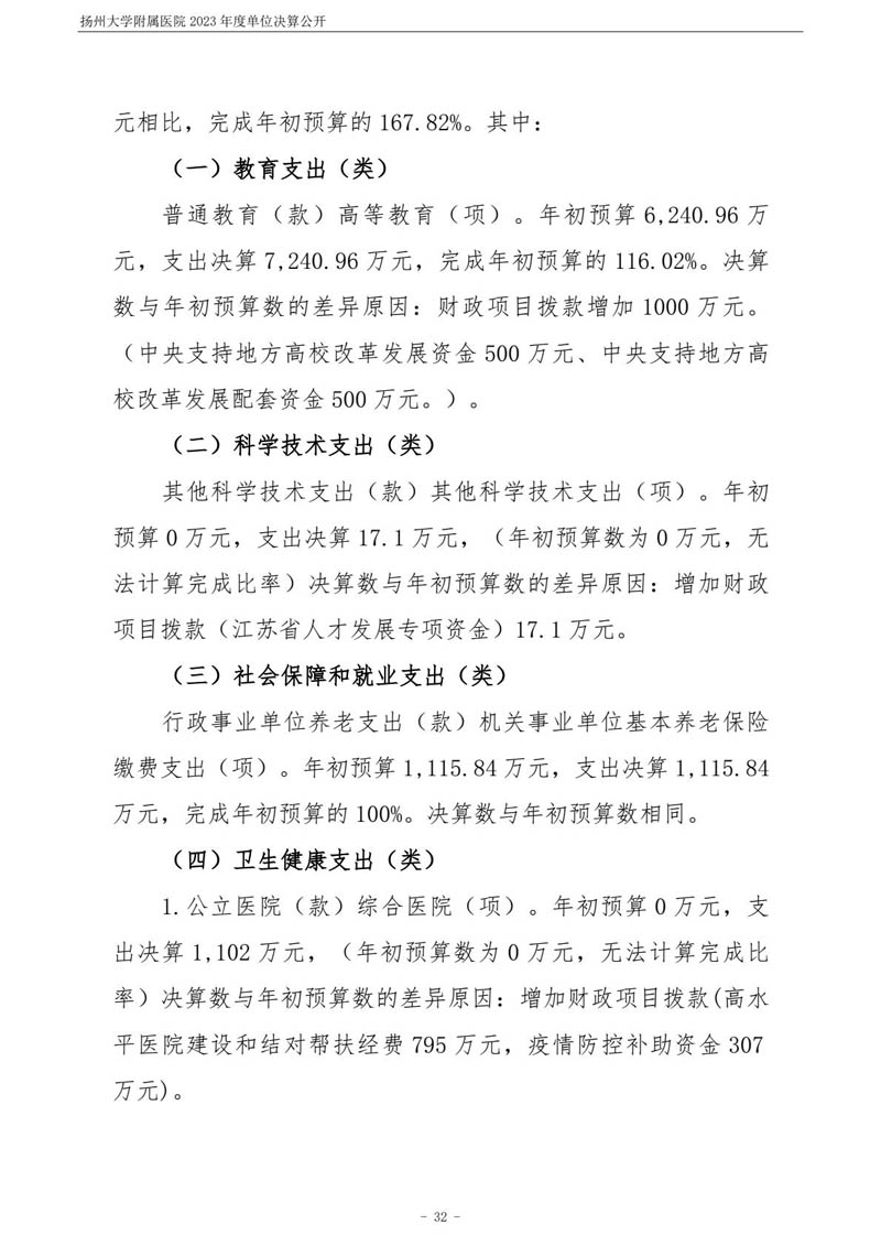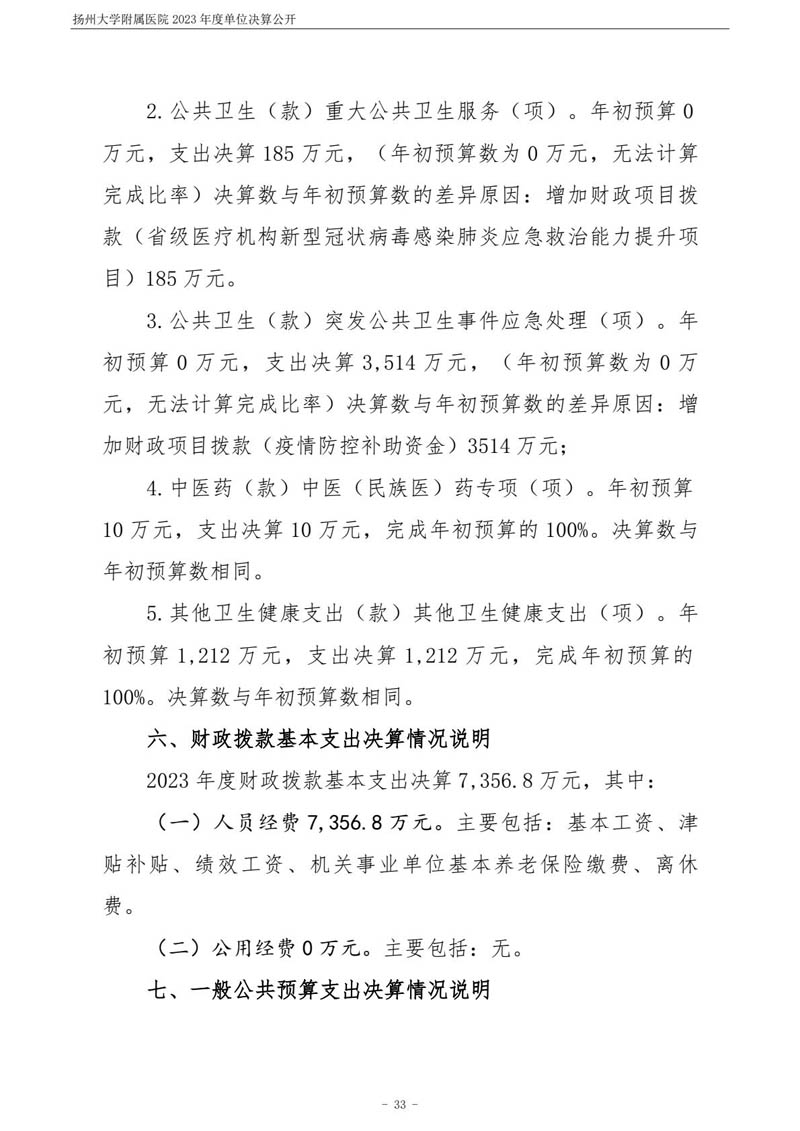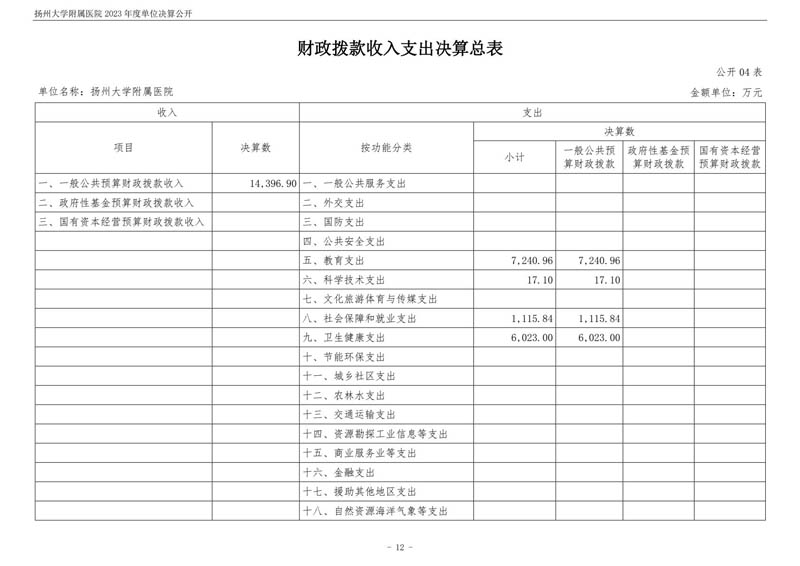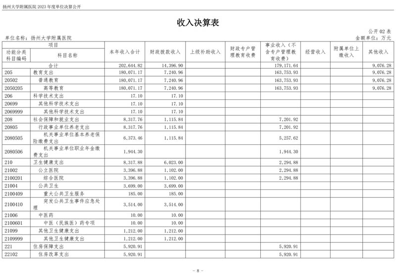 扬州大学附属医院2023年度单位决算公开