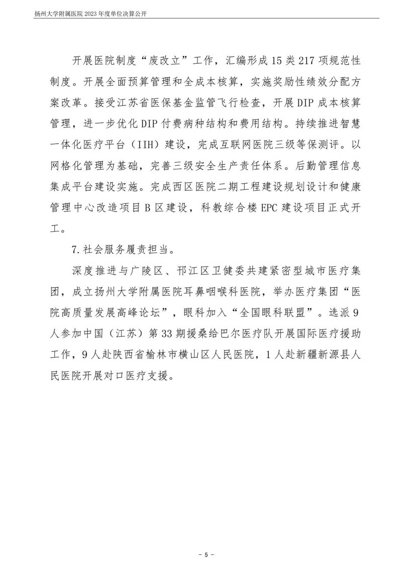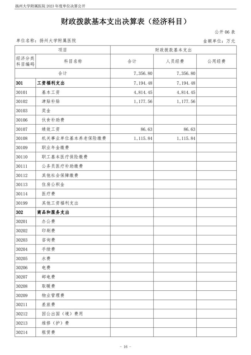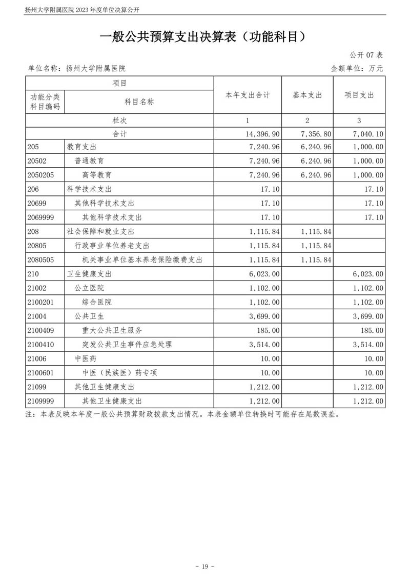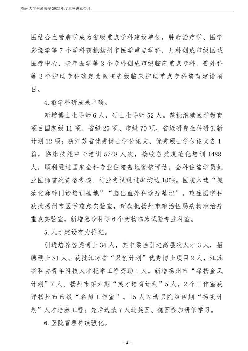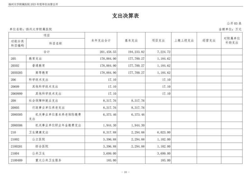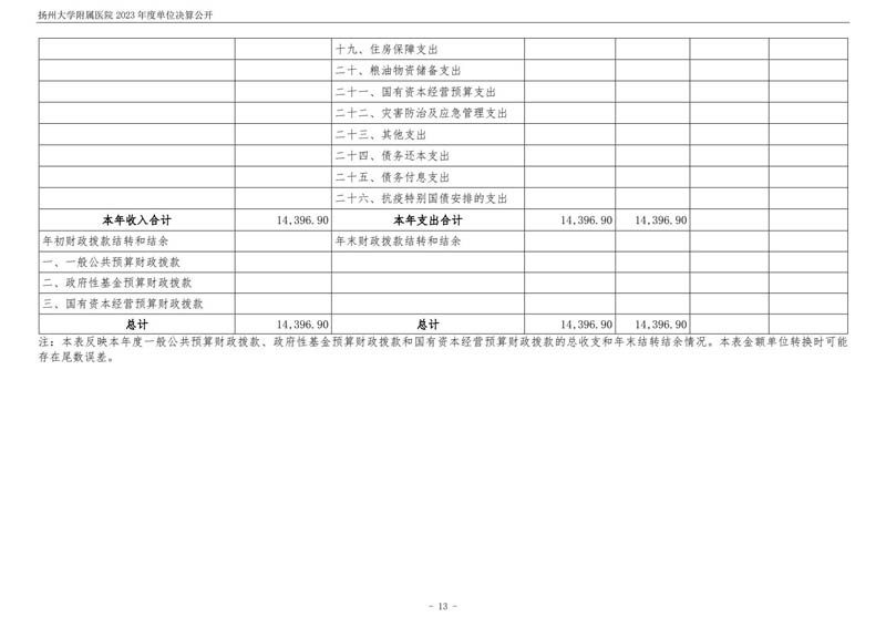 扬州大学附属医院2023年度单位决算公开
