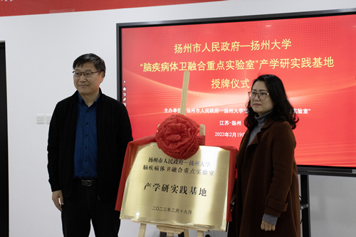2月19日上午,由扬州市人民政府和扬州大学共建的“脑疾病体卫融合重点实验室”产学研实践基地授牌仪式在扬州大学扬子津校区文体馆WE201会议室举行。扬州市卫生健康委科教处处长江澜,扬州大学社会合作与服务处处长张丹,“脑疾病体卫融合重点实验室”主任、扬州大学体育学院院长陈爱国,扬州大学附属医院发育行为儿童保健科副主任陈敏华,苏北人民医院北区医院、扬州市康复医院院长孟兆祥,扬州市妇幼保健院副院长姜跃彭,扬州市体育康复医院院长金星,扬州市雏鹰儿童发展中心主任孔兰君,扬州市星航儿童潜能发展中心园长赵苏云以及扬州大学相关专业博硕士研究生代表出席活动。江澜主持仪式。据了解,该产学研实践基地的揭牌标志着脑疾病产、学、研、用多方战略合作共同体的正式成立,是合作单位之间深度协作、融合发展的重要成果。未来,基地将以推动脑疾病体卫融合康复为使命,通力合作、同心同向、共建共享,在科研、临床、教学等领域开展深层次的交流与合作,全力打造体卫融合的“特色样板”,为“健康江苏”“健康扬州”建设作出新的更大贡献。我院发育行为儿童保健科成为产学研实践基地,借助实验室的科研平台,将在临床、科研等方面输出更多成果,同时将通过线上线下“双通道”开展公益活动,切实帮助更多的孩子及家庭,促进儿童的心理行为发育,助力孩子健康成长。