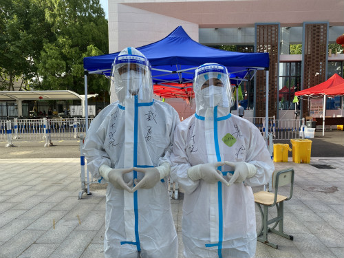 8月5日,扬州主城区启动第三轮全员核酸检测。在奥园观庭采样点,我院医务人员应社区要求,为行动不便的老弱病残群众和居家隔离的人员上门采集核酸。神经外科副主任医师段晓春已经在采样点连续工作了6个多小时,仍然主动请缨,上门为梅岭街道邗沟社区10余名群众采集核酸。整个过程耗时两个多小时,他穿着厚重的防护服,骑着电瓶车,顶着烈日来回穿梭。居民中有中风瘫痪在床的,有年事已高行动不便的,也有因为有新冠肺炎患者次接触史而隔离的,段晓春不顾疲劳,一家一家、一层楼一层楼奔波着。有位居民住在7楼,爬到7楼后,段晓春已经气喘吁吁,缓过神来后,他仍轻柔细心地为居民采集核酸,离开时再对环境进行消杀。汗水湿透了他的衣背,裤腿里能倒出水,虽然很累,但是居民告别时的连声道谢,让他觉得再苦再累都值了!在游泳健身中心采样点,同样有一些行动不便的居民需要上门采集核酸。8月5日下午5点以后,前来采样点做核酸检测的居民相对少了一些。队员骨科主管护师赵雯在社区工作人员的带领下,前往慧享福长者照护中心和御和苑北小区,为老年居民采集核酸。养老院都是老年人,有的卧床、有的行动不便、有的有心理障碍,不是太配合,采集起来也比较困难。赵雯克服困难,为养老院的老人和工作人员共采集56份核酸。随后,赵雯又前往御和苑北小区采集2份核酸。绿杨新苑采样点的麻醉科副主任护师吴晨小组7人先为小区二期的居民采集了近5000份样本,之后接连又奔赴一期支援战友工作,而一期采集量巨大,有近8000个,但他们没有人喊苦叫累,都在岗位上坚持着。小区内有一养老院,考虑到里面多为出行不便的老人,且失能率较高,连同院内员工共有80余人。为确保采样全覆盖,针对老人身体抵抗力较弱、出行不便的实际情况,他们短暂休息后,便决定抓紧时间上门采样。养老院老人行动不便、张口困难,但他们依然怀着爱心和耐心,一边真诚地安慰老人,一边积极引导他们配合采样工作。在采样的同时,他们还积极宣讲疫情防护知识、生活健康常识,增强老人的科学防护意识,并鼓励他们树立信心。养老院的老人、护理人员纷纷表示,上门服务真的很暖心,令他们很感动。