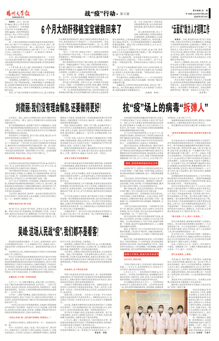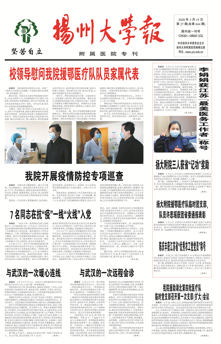 《扬州大学报•附属医院专刊》第27期(总第644期)(2020年3月15日第3版)