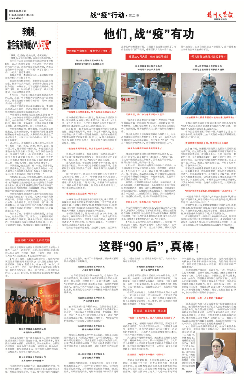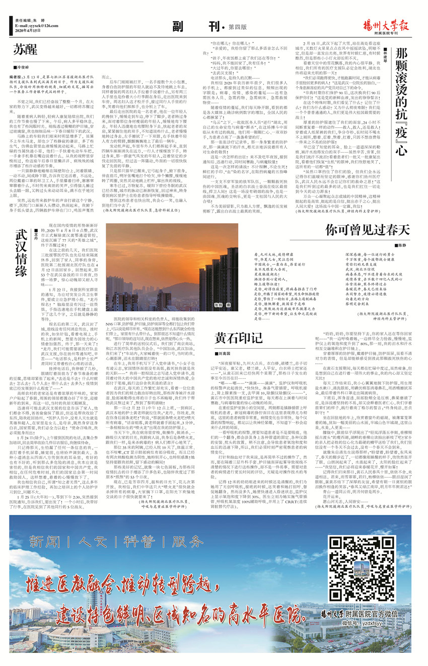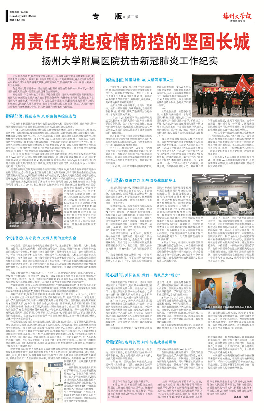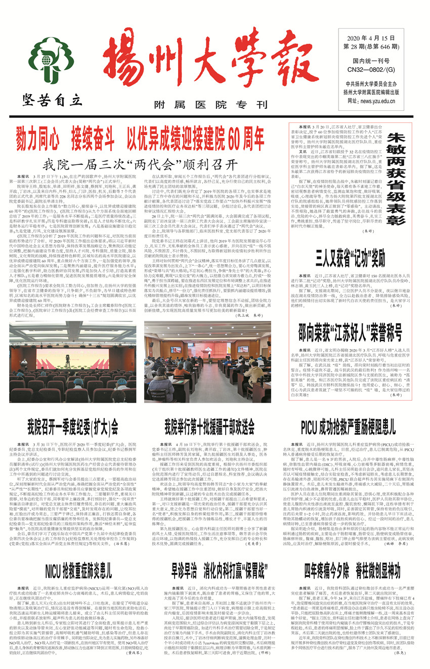 《扬州大学报•附属医院专刊》第28期(总第646期)(2020年4月15日第2版)