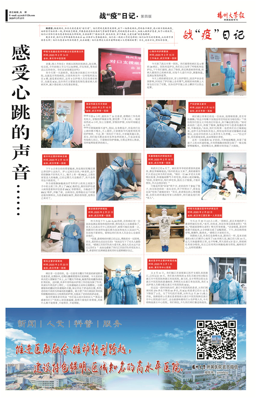 《扬州大学报•附属医院专刊》第27期(总第644期)(2020年3月15日第4版)