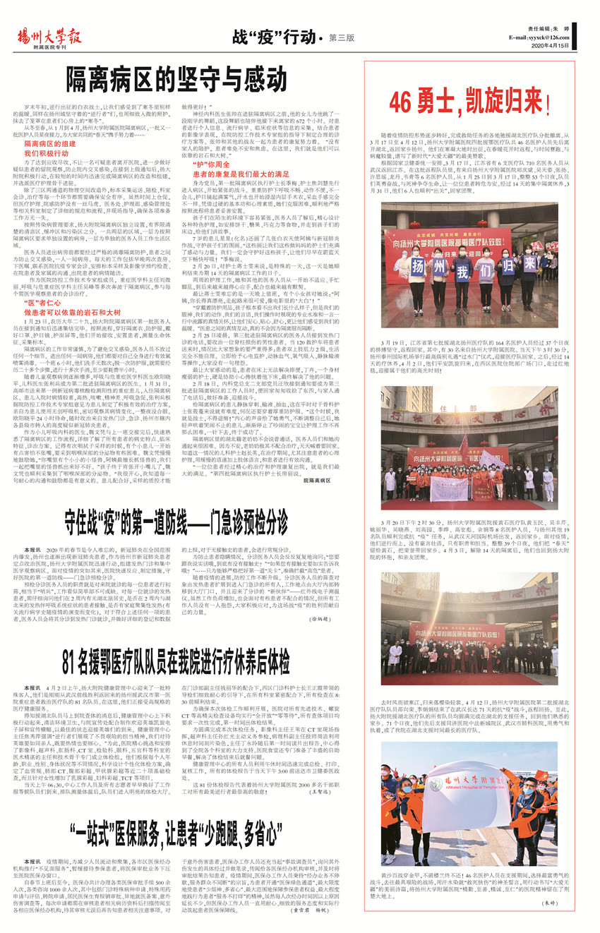 《扬州大学报•附属医院专刊》第28期(总第646期)(2020年4月15日第3版)
