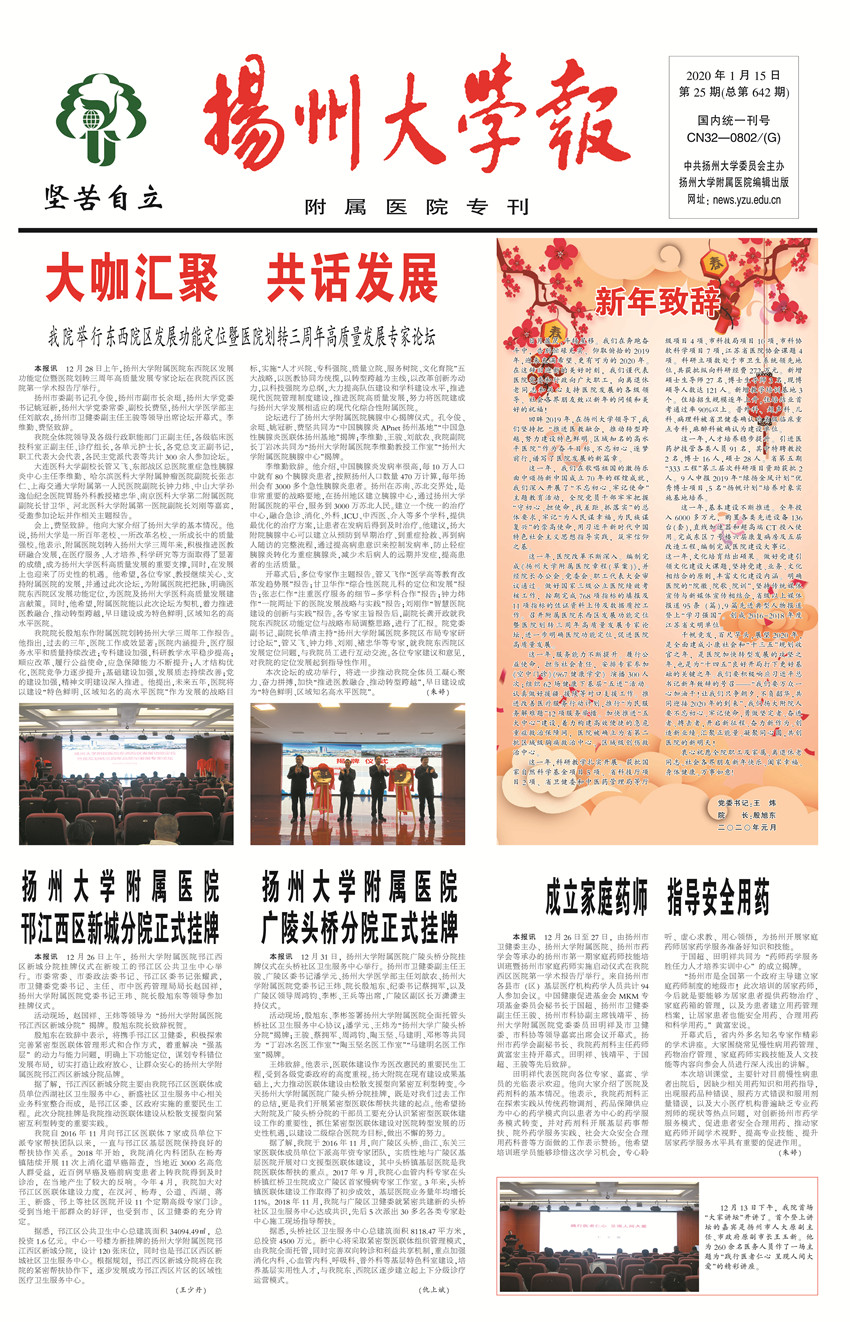 《扬州大学报•附属医院专刊》第25期(总第642期)(2020年1月15日第1版)