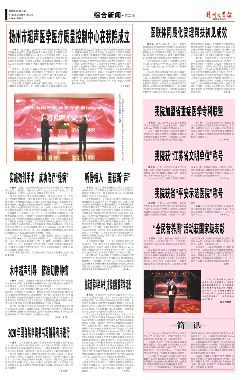 《扬州大学报•附属医院专刊》第25期(总第642期)(2020年1月15日第2版)