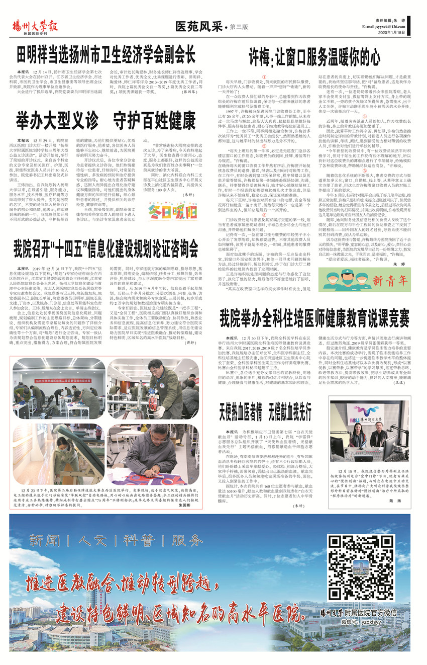 《扬州大学报•附属医院专刊》第25期(总第642期)(2020年1月15日第3版)