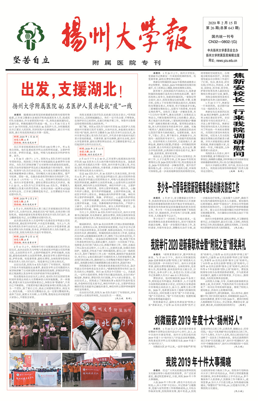 《扬州大学报•附属医院专刊》第26期(总第643期)(2020年2月15日第1版)