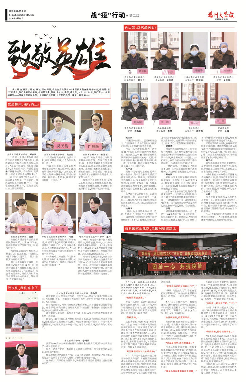 《扬州大学报•附属医院专刊》第26期(总第643期)(2020年2月15日第2版)