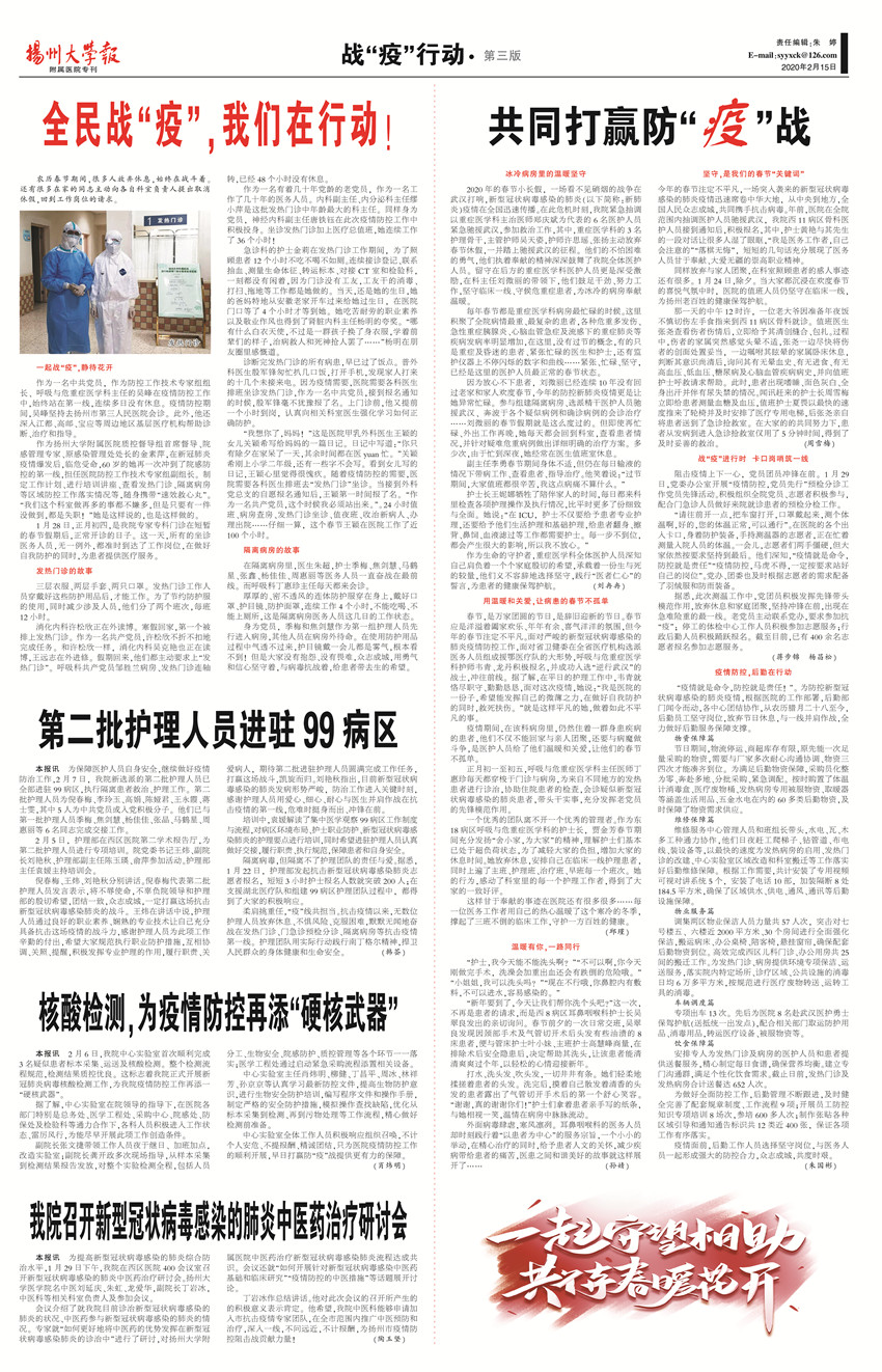 《扬州大学报•附属医院专刊》第26期(总第643期)(2020年2月15日第3版)