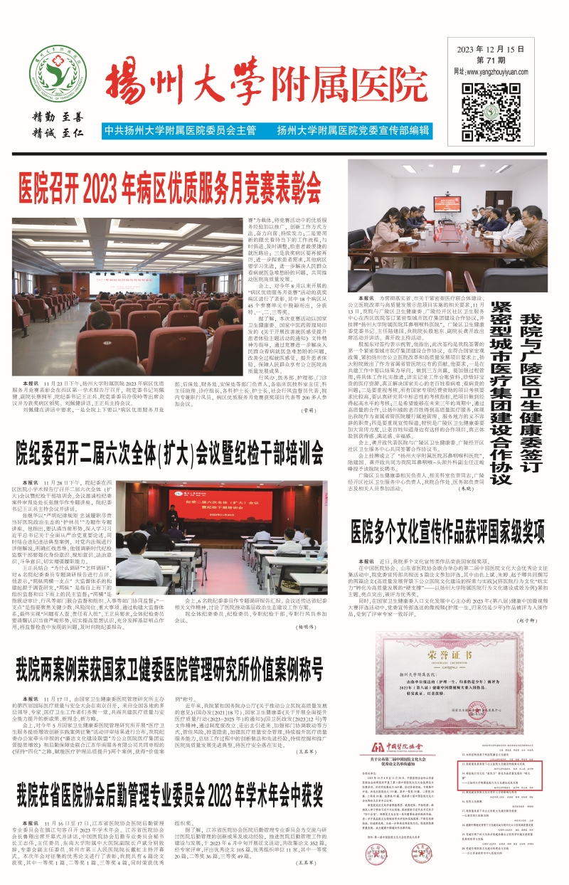 《扬州大学附属医院》第71期(2023年12月15日第4版)