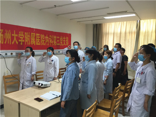 会上,内科三支部组织委员季梅同志带领大家学习了《姚冠新书记在2020年学校全面从严治党工作会议上的讲话》;纪律委员刘申香同志带领大家重温入党誓词,并进行了《基层党员需要正视的几个问题》专题学习。陶玉坚同志向党员通报了近期支部“三会一课”进行的情况,以及近两年来支部所取得的成绩。他说,近两年来,支部在全体党员的共同努力下,取得了一些成绩。其中《幸福始于呼吸,防治从基层做起》获得扬州大学“最佳党日活动”奖;支部被评为扬州大学附属医院“先进基层党组织”;陶玉坚的《高校附属医院支部建设的现状与对策思考》荣获扬州大学党建研究会优秀论文二等奖。支部还申报《关于加强医疗基层党组织生活有效性研究》课题、申报《从平凡到逆行,党建引领,责任同行》组织工作创新奖。