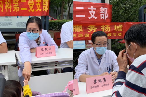 6月20日,第四场“传承初心 服务扬城”扬州大学附属医院党员医疗服务队系列巡回义诊宣教活动在蒋王社区党群服务中心举行。