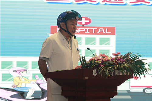 会上,市公安局交警支队政治处主任张智刚,我院党委副书记、副院长单清分别发表讲话,引导医务人员充分认识到驾驶机动车时使用安全带、骑乘电动车时佩戴安全头盔的必要性。活动现场播放了“一盔一带”交通安全警示教育片。战“疫”英雄代表重症医学科副主任医师陈庆丰宣读了面向全市医务工作者的倡议书。现场还举行了向我院援鄂医务人员赠送电动车安全头盔和终身免费更换电动自行车电瓶仪式。