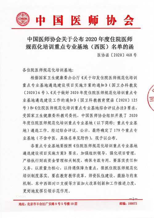 近日,中国医师协会公布2020年度住院医师规范化培训重点专业基地(西医)名单,我院妇产科在名单内,荣获国家首批“住院医师规范化培训重点专业基地”,成为江苏省唯一一家妇产专业获此荣誉的专业基地。