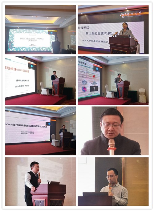 会上,南京市第一医院周俊山教授作“心源性卒中诊治争鸣”讲座。他介绍了全球主流的心源性卒中诊治的观念,内容丰富、角度全面,极大拓宽了参会学员的知识面;江苏省人民医院心内科郦明芳教授作“新型口服抗凝药的实用指导”讲座。她从心内科医师角度介绍了房颤,向大家灌输了动态评估的理念,指出在房颤诊治过程中,除了评估抗凝指标和出血风险外,对于暂时不需要抗凝或已经抗凝的患者,需要动态观察,及时评估了解是否后期需要抗凝或是调整治疗方案;江苏大学附属医院于明教授作“心源性卒中的抗栓治疗”讲座。他说,在传统认知中,心源性卒中更多的是关注抗凝的问题,他从抗栓的视角讲述了心源性卒中的机制和作用,令人耳目一新;苏北人民医院李晓波主任作“ESUS二级预防的临床相关研究”讲座。他结合最新的研究进展,对不明原因的脑卒中进行抗凝治疗的大型RCT研究进行了总结分析。除此之外,多位讲者从血管再灌注治疗的角度阐述了脑卒中的诊治现状,并进行了精彩的病例交流,大家均展示各自诊疗领域的临床经验和研究成果。整场会议高潮迭起,令人意犹未尽。