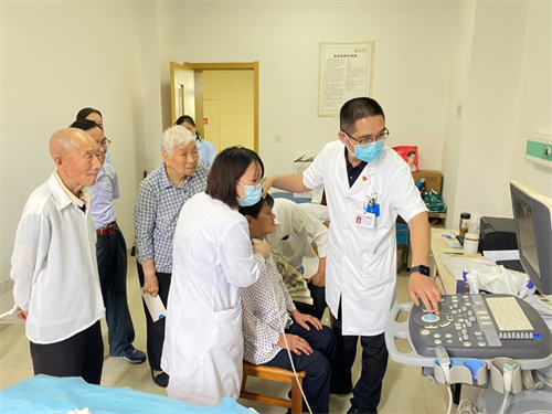 活动中,神经外科主任彭爱军在现场与老年居民进行互动,从专业的角度给他们答疑解惑;神经外科主管护师邱焘详细讲解如何预防脑卒中相关知识。讲座结束后,神经外科护士长房会娥带领部分党员同志有条不紊地为老年人群测量血压、血糖;重症医学科副主任医师孟丽君为老年患者进行颈动脉狭窄筛查,对于筛查出颈动脉狭窄的老年患者,彭爱军给予相应的专业意见。与此同时,外科党总支副书记程诚带领部分党员同志对绿康缘护理院长期卧床的部分重点患者进行查房,并与该院专家充分沟通、交流,针对病情提出合适的治疗方案。
