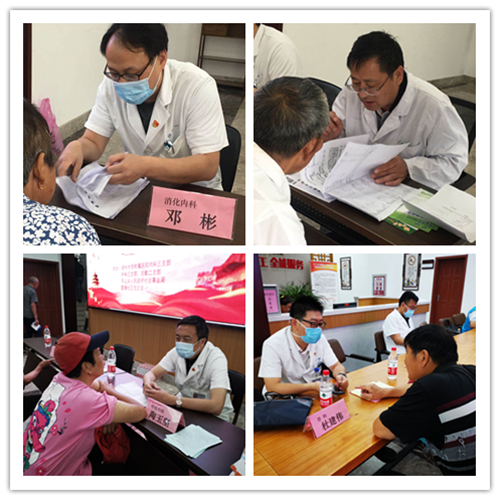 本次义诊活动的医疗团队由消化内科副主任医师邓彬、严明权,呼吸与危重症医学科主任医师陶玉坚,肾脏内科主任医师杨明,心血管内科副主任医师陈明星,骨科副主任医师杜建伟,神经内科主治医师张海峰,内分泌科主治医师徐礼科等专家组成。