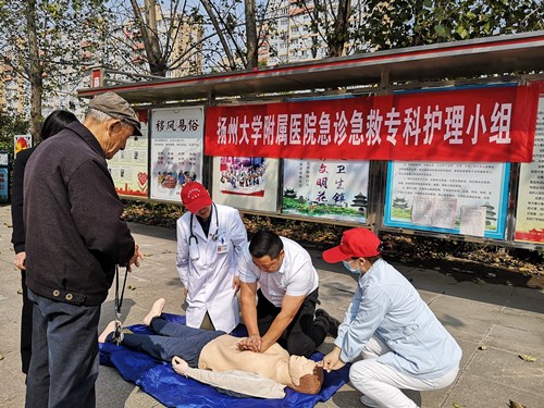 上午8点多,东八里铺社区党群服务中心门口广场,大量社区居民慕名而来。医务人员有序地逐一为居民们测量血压、血糖和血型,对于血压、血糖测出来有问题的,门诊部副主任、二支部书记张敏便将他们引导至心血管内科主任医师孙晓宁和内分泌科主任医师徐艳处看诊。活动现场,工作人员耐心询问居民的日常习惯及身体状况,并针对病情做出专业诊断和建议,尽心尽责为居民答疑解忧。急诊科副主任冷俊岭、急诊急救专科护士孙利现场演示心肺复苏,他们轮流向居民们阐述心肺复苏的意义,并利用通俗易懂的语言,进行专业、全面的演示。