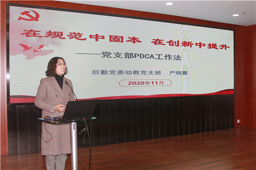 严晓霞结合支部党建工作标准化建设,图文并茂地为大家详细讲解了党支部如何运用PDCA工作法规范和改进党建工作。她提出,支部书记要做到“三好”,即站“好”位,规划支部发展;谋“好”事,做好书记工作;选“好”路,促进水平提升。支部工作要做到“三有”,即在服务上“有”新思路,在活动开展上“有”新平台,在作用发挥上“有”新载体。
