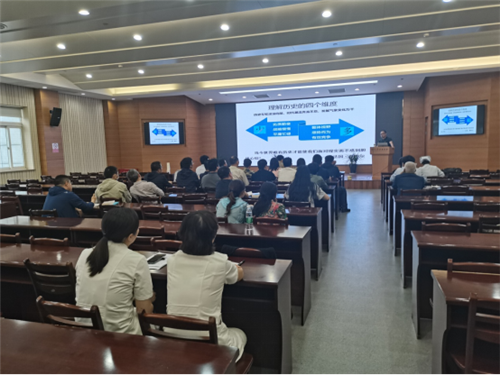 6月3日,院党委副书记、副院长单清为后勤分管处室党员作“从党史教育中汲取力量健全品格提升能力”专题党课。他从历史的4个维度进行了生动讲解,联系实际工作、生活,引导党员如何干事业、如何树立正确的人生观。