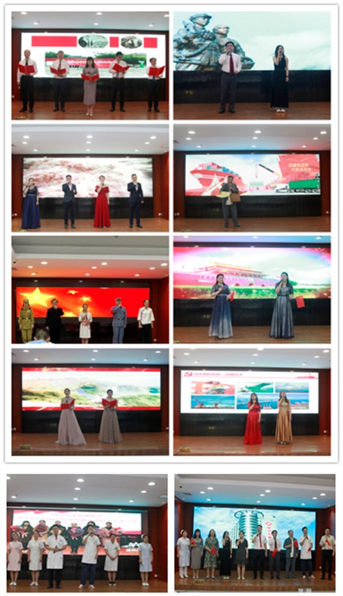 演出在外科三支部选送的抑扬顿挫的诗朗诵《红梅赞》中拉开帷幕。外科四支部选送的歌曲《映山红》声情并茂,再现了无数共产党人用鲜血和生命迎来了民族独立、人民解放;外科一支部的诗朗诵《我的祖国》、外科二支部的京剧《大吊车真厉害》和外科四支部的诗朗诵《毛泽东诗词组诵》赢得阵阵掌声。大家热情讴歌建国后党领导人民改天换地,在社会主义道路上奋勇前进;外科一支部的歌曲《春天的故事》和团委的诗诵读《美丽中国》再现了改革开放后,中国共产党带领中国人民从站起来到富起来的伟大壮举;外科四支部的歌曲《我爱你,中国》和团委选送的抗疫版《为了谁》歌颂了中国特色社会主义进入新时代,无数共产党人为实现中华民族伟大复兴的中国梦,在急难险重中挺身而出,中国人民从富起来到强起来的奋斗历程;大合唱 《我和我的祖国》,唱出了中国共产党胸怀千秋伟业,恰是百年风华的心声。