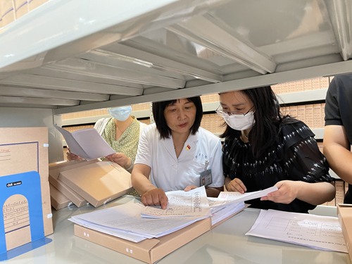 胡宝剑向检查组汇报我院档案工作。他说,我院涉及的档案资料种类繁多,按照“大档案”理念,坚持“应收尽收、应归尽归”原则,明确档案资源建设的主体责任、总体目标、重点任务和开发利用,着重对各门类专业档案、业务数据及电子文件的形成、归档与移交,档案资源的共建共享等提出归档要求。随着医院内设机构的调整,我院及时更新制定《扬州大学附属医院各处室归档范围和不归档范围》《各门类档案归档范围和保管期限表》,这两个文件的重新修订使医院档案管理工作有章有循、有法可依,使我们更加熟悉室藏档案内容,提高服务质量和室藏档案资源利用率。
