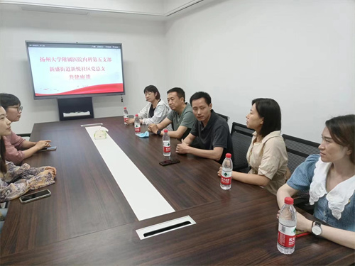 下午3:00,大家来到新悦社区党群服务中心,肿瘤科副主任毛海燕为居民作“如何走向健康人生?——浅谈夏季养生”的健康讲座,她用通俗易懂的语言,告知普通百姓在夏季如何通过饮食、服饰、运动、中医等方式达到身心健康的目的。社区居民纷纷点赞,表示希望以后此类讲座多多开展。随后,内科五支部与新悦社区开展支部共建座谈会,双方分别就党支部各项工作开展情况进行交流,并依据居民需求,共同探讨长期合作交流的方案。双方以本次支部共建为契机,互相学习交流,有效整合党建资源,达到资源共享、优势互补、共同提高、共同发展的目的。