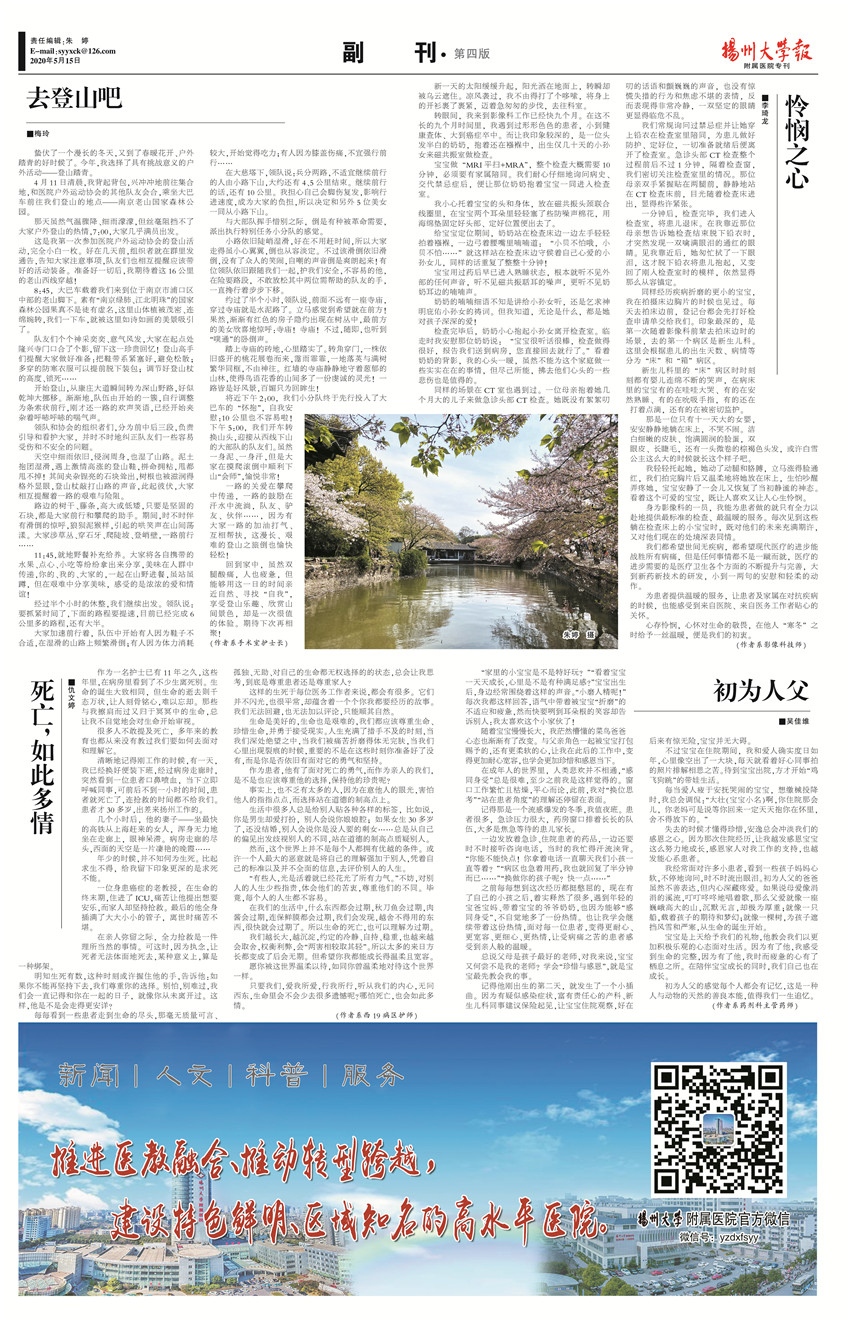 《扬州大学报•附属医院专刊》第29期(总第649期)(2020年5月15日第4版)