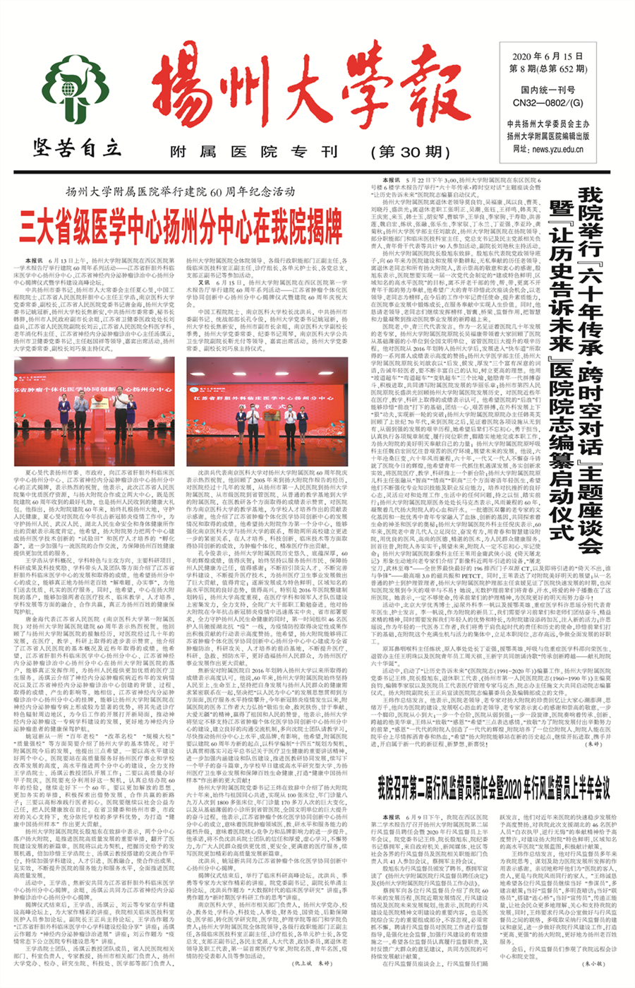 《扬州大学报•附属医院专刊》第30期(总第652期)(2020年6月15日第2版)