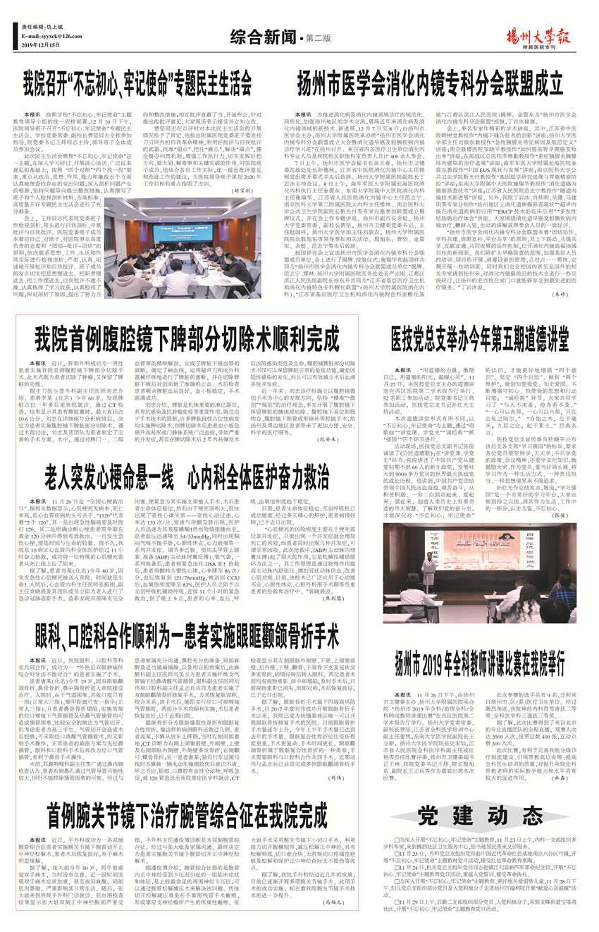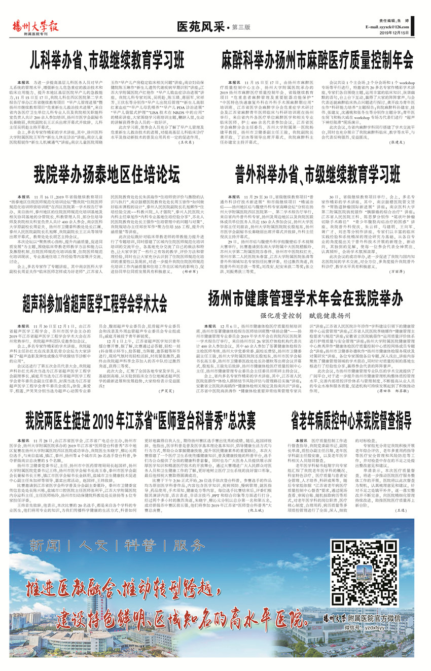 《扬州大学报•附属医院专刊》第24期(总第639期)(2019年12月15日第2版)