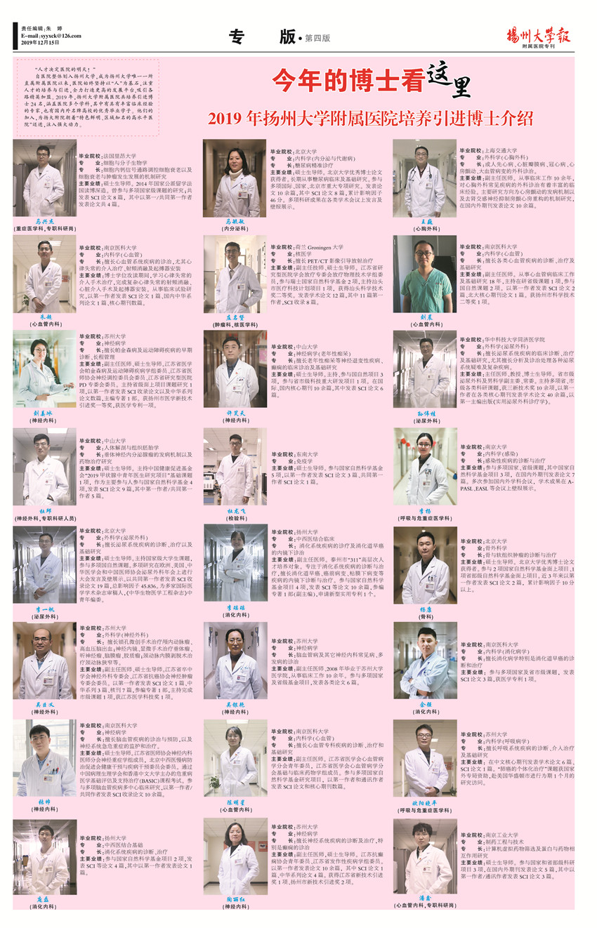 《扬州大学报•附属医院专刊》第24期(总第639期)(2019年12月15日第4版)