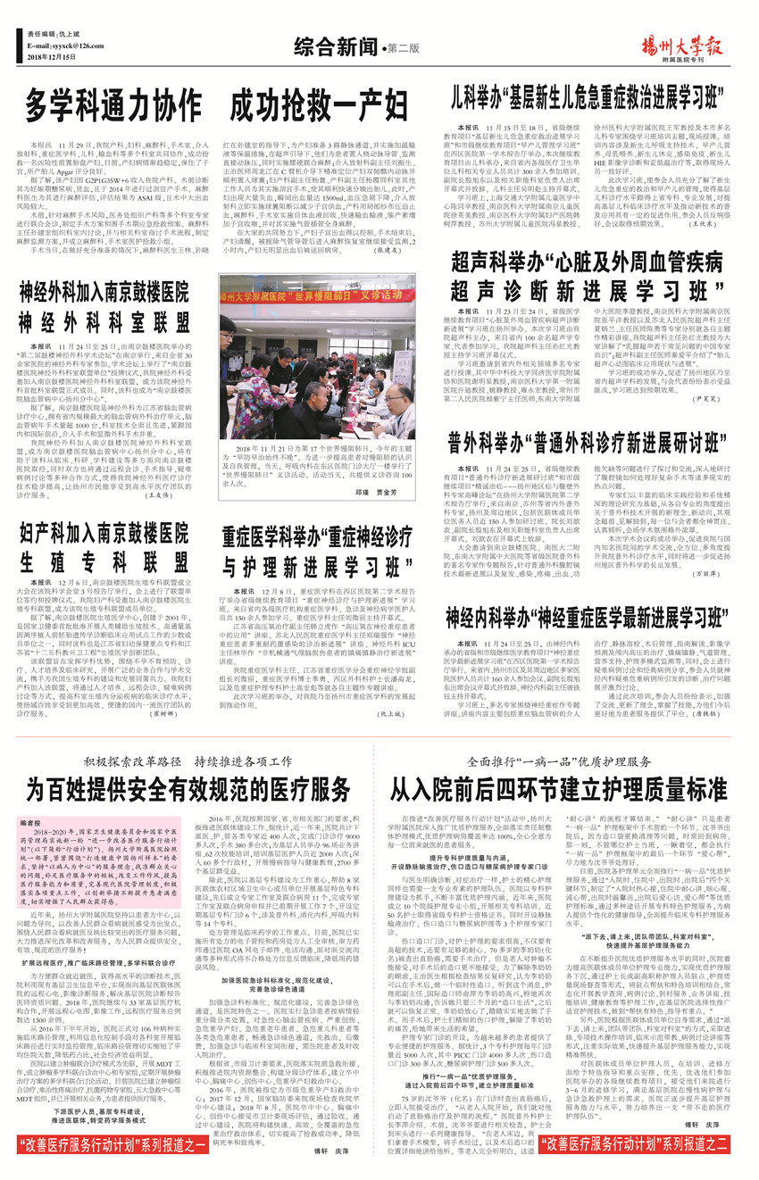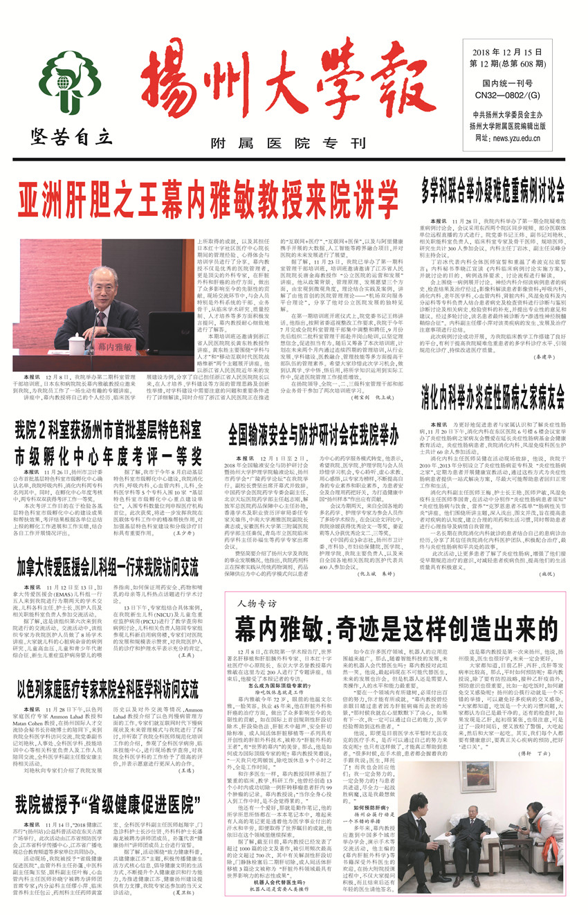 《扬州大学报•附属医院专刊》第12期(总第608期)(2018年12月15 日第2版)