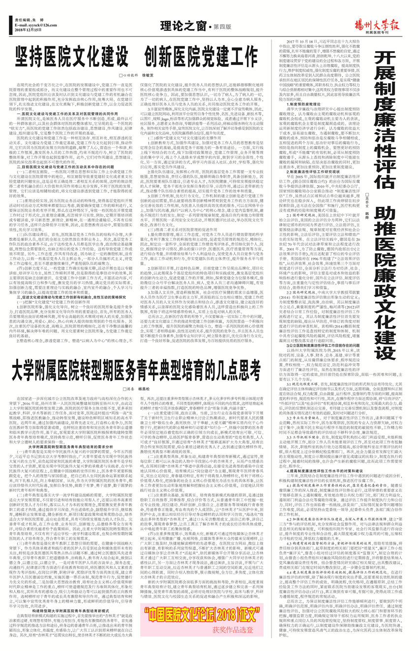 《扬州大学报•附属医院专刊》第12期(总第608期)(2018年12月15 日第4版)
