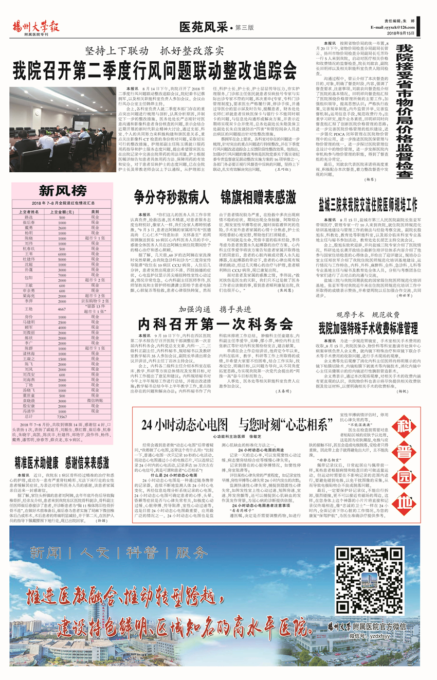 《扬州大学报•附属医院专刊》第9期(总第599期)(2018年9月15日第4版)