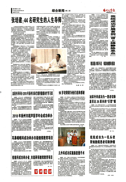 《扬州大学报•附属医院专刊》第7期(总第595期)(2018年7月15日第2版)